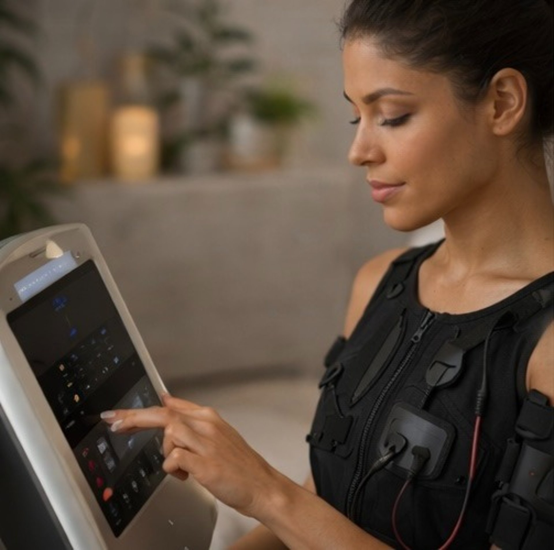 *EMS formt und strafft den Körper effektiv in kurzer Zeit. Gezielte Impulse aktivieren die Muskulatur intensiv, fördern die Fettverbrennung und sorgen für ein strafferes, definierteres Erscheinungsbild – gelenkschonend und zeitsparend.