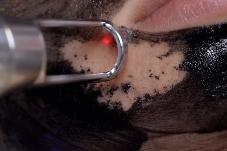 *Die Laser-Haarentfernung reduziert unerwünschte Haare langfristig und schonend. Gezielte Lichtimpulse wirken direkt an der Haarwurzel und hemmen das Nachwachsen – ohne die Haut zu schädigen.